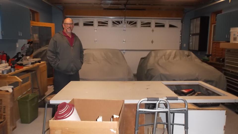 Visitors in by 8 am, folding shop around 2 pm, clean up to follow, then back to Crystal Lake. After about 2-hour cool down, head for the garage to drill a timber and install an eye bolt.