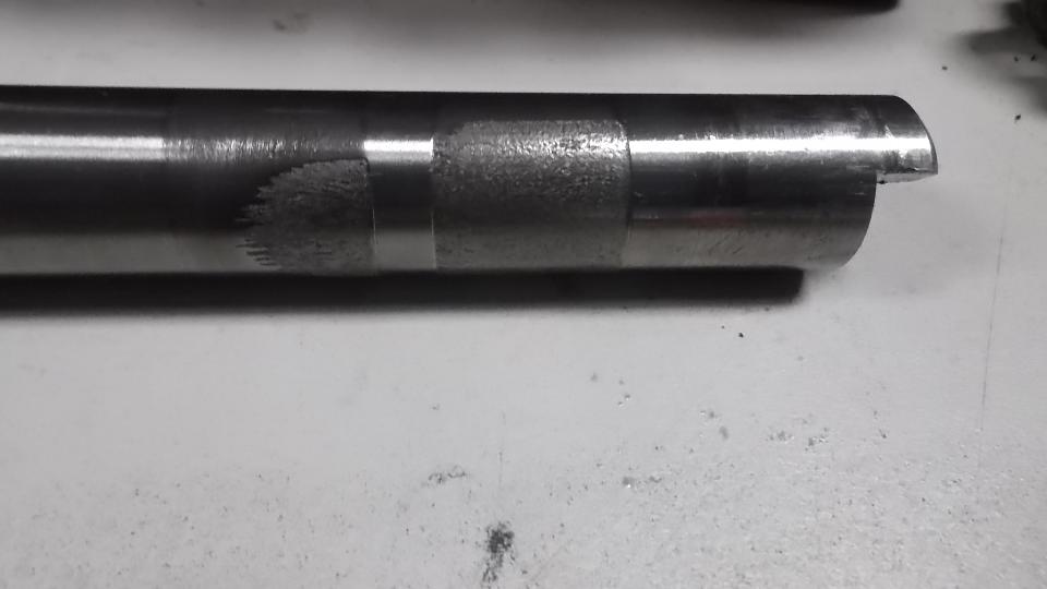 I stood the old gearbox on end and removed the failed layshaft long enough for pictures and measurements, then reassembled into the old gearbox for safe keeping. If I had a new layshaft handy it might be a good bet to install the new part and put it back on the road, as the unit was functioning perfectly with good synchronizers and finger tip shifting. It was just very noisy in first gear, and I wanted to fix it before catastrophic failure.