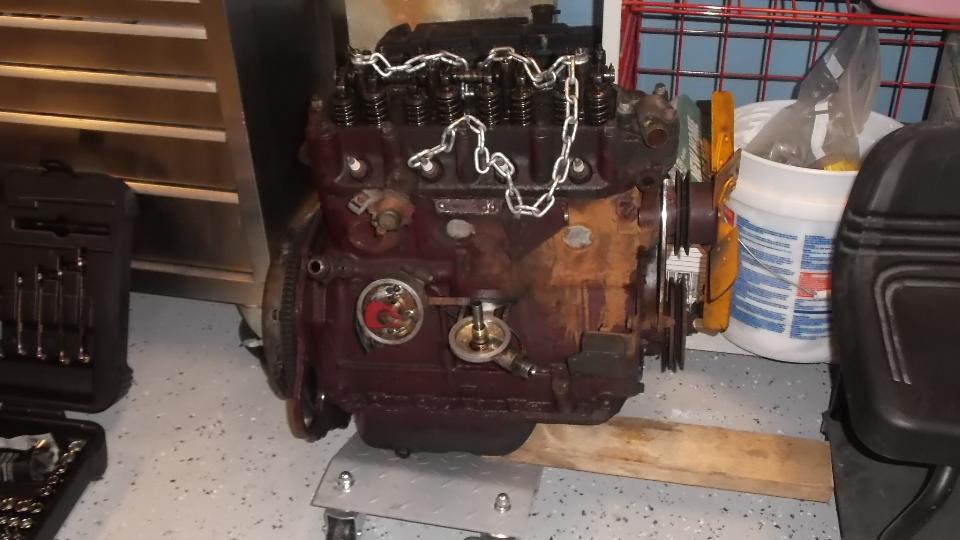 After dinner another 40 mile drive NxNW to visit Victor L'Heureux in Crystal Lake where we get to check out his toy shop (garage). Two cars wide and two cars deep, with a two story climbing wall in the back (DPO endeavour), and a nice storage loft. I was immediately sizing up the upper floor joists to pick out a good spot for the lag screw eye bolt to be used to pull my engine. Enough of that, getting late, time for the hosts to crash while I spiffy up these photos and notes. Long day.