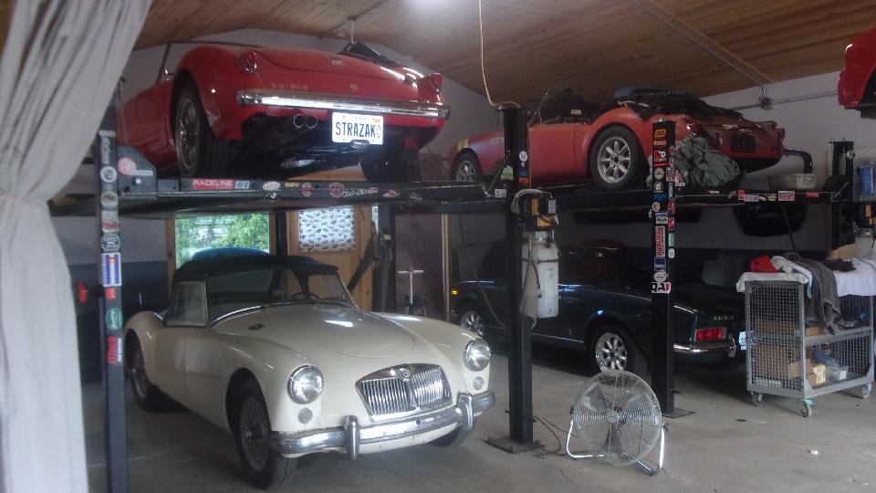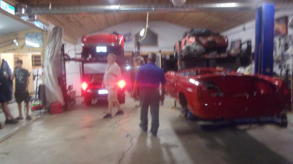 Five miles back to Tommy's Garage. In short order we had moved a few things around, unloaded the car and had it stashed inside. Thinking this must be the first time there were three MGA in here at the same time. Now I have a change of plans, Rather then bugging out of town after next Monday night's CMGC club meeting, we may stick around two more days to be here for next Wednesday night tinkering session. Then we can give this car a close inspection to see what it needs and lay plans for its recuperation.