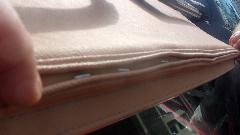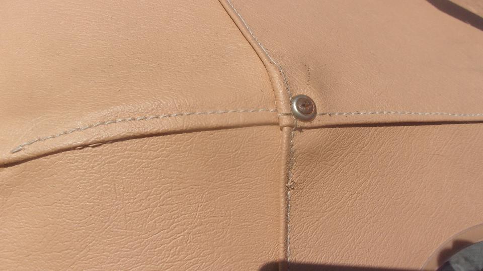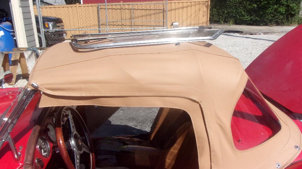 There it is with the Hidem strip installed, trim tabs in place, and two more screws with finishing washers on top to secure the fabric to the rear steel bow of the top frame. Cute. Noe we hope it will last longer this time.