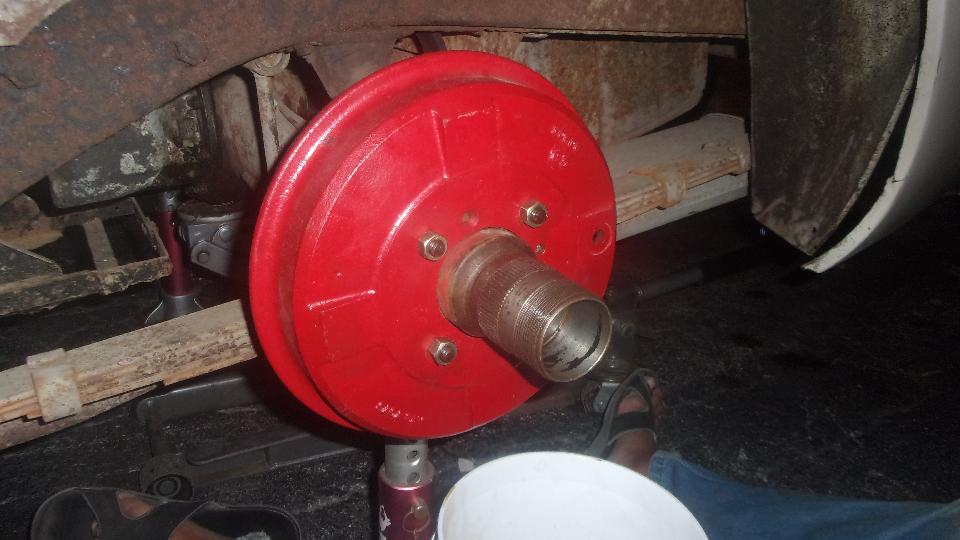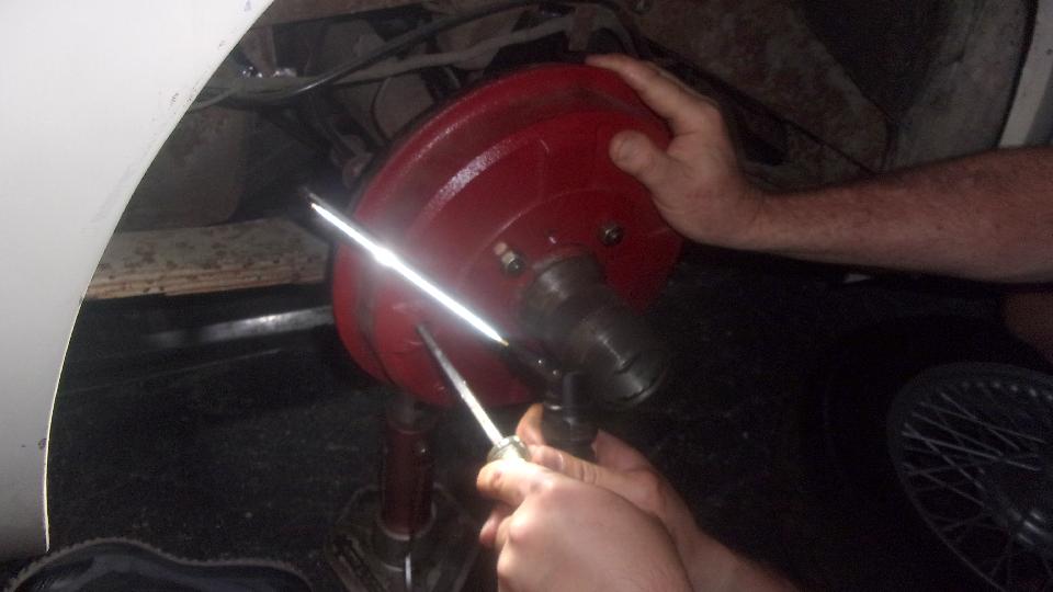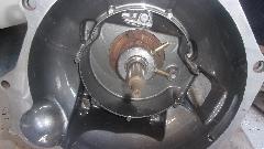 Back to the MGA, what does it take to make it road worthy for a test drive? Get the brakes to work. Most of the rear brake parts look like new, but there was a bit of oil on one of the shoes. The single flat head screw securing the rear half shaft was finger loose on both sides, boo, hiss. The Magic Trailer gave us new rubber O-rings and paper gaskets for the rear hubs, soon fixed.