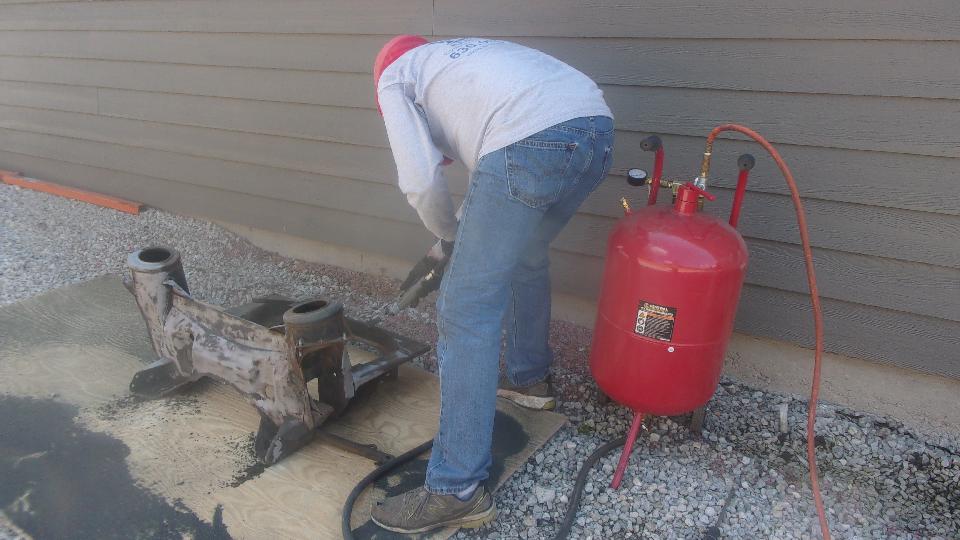 Then a couple guys were dragging out the sand blaster, because someone brought over front and rear subframes for an MG 1100 Sport Sedan. I know a little something about this, as I used to own an Austin America with Hydrolastic suspension, and I have repaired a few of them. I also wrote the operating instruction for this (cheap) sand blaster 20 years ago, so a little coaching was in order, but when it was fired up in the open it was time for me to run for cover.