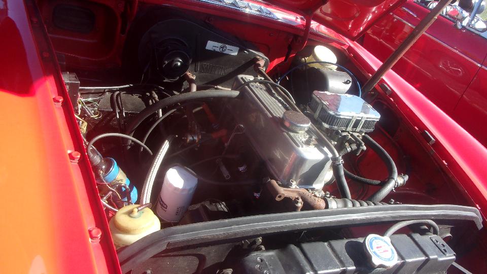 The engine would fire and run a few seconds on a sniff of starting fluid so it should run with some fresh fuel. Sparky had previously drained the stale fuel, cleaned out the carburetors, changed the carb fuel hoses, and verified the fuel pump was working. Off to the local station for two gallons of fresh premium fuel, pump it up, crank it up, and YES it runs, right off.