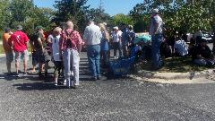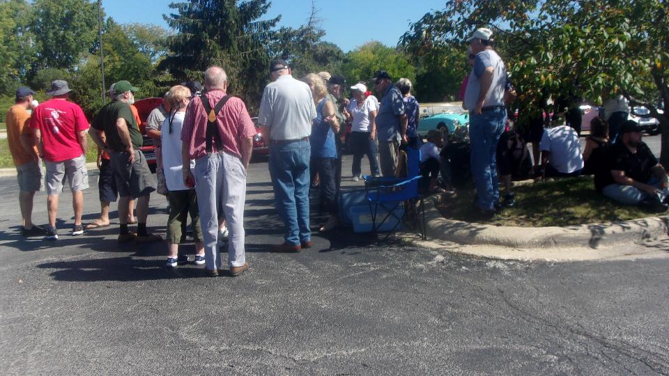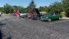 Long line up of cars before the rally. Believe I counted 14 MGs, and a few more family haulers that would also participate. The white MGB with black bumpers moved a couple of times. I think he was looking for shade, as the engine was running very rich and being hard to start. But he was declining offers of help, figuring it would make it through the rally okay.