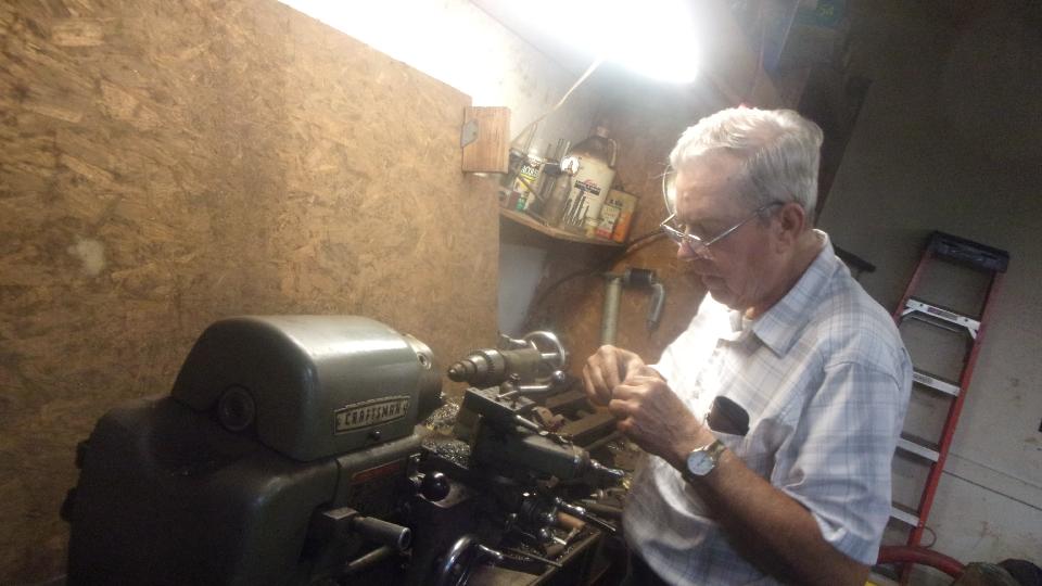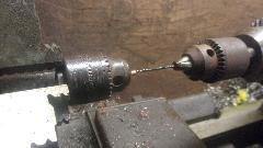 Mostly just family chat when we're here, but I sometimes have something more interesting for him to play with. He is a retire machinist, and still keeps some machine tools in his large garage/workshop. I only wanted to borrow a 0.075-incb drill bit and a hand drill, but he got more carried away with unnecessary precision.