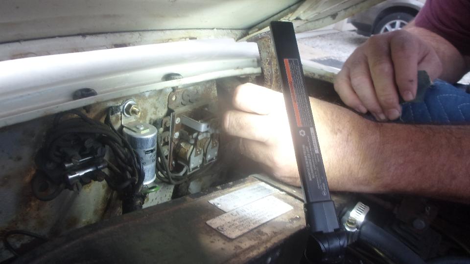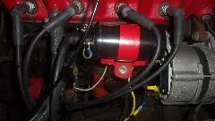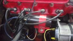 Being about 10:30-pm, we took the most expedient solution, beginning with swapping out the distributor for the spare on in the trailer. Then run a new 18-Ga White wire from fuse box to ignition coil, winding it around the main harness for security, and another new wire from coil to distributor. That's all, set timing by ear, clamp it down and be out of there by midnight. Off to Sheetz for late dinner, then get some sleep.