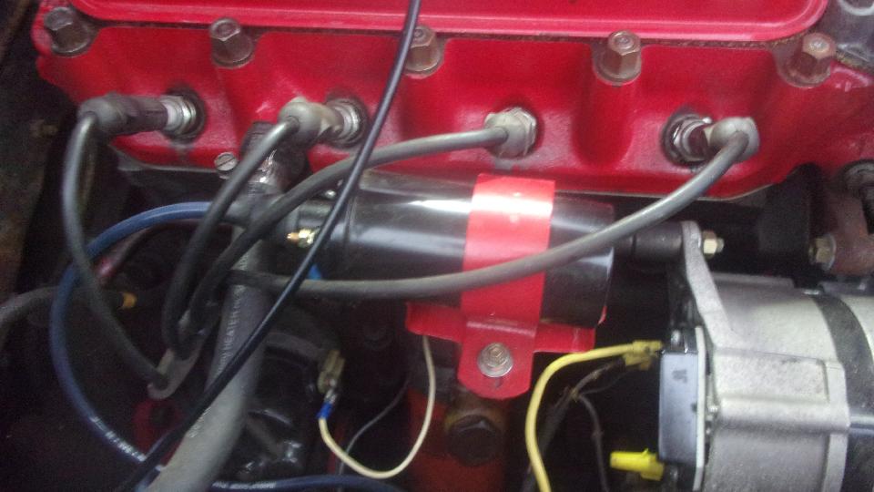 Pull off the distributor cap and get the ohm meter to check continuity of the HT wires. test leads from the terminals inside the cap to the plug connectors shows 4400-ohms for all four spark wires, but resistor wires should not be used with the side entry distributor cap because the screw type terminal spikes in the cap do not make good contact with the carbon string core "wire".