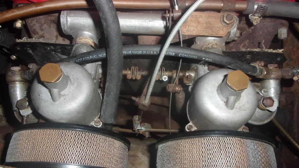 Sorry, but big disappointment here, running on two cylinders (which I am informed was exactly what it was doing before the carburetor work). Rats! Close the front carb throttle plate, open the rear carb, and it runs on two cylinders. Close the rear carb throttle plate, open the front carb, and it runs exactly the same on two cylinders. Nothing wrong with the carbs, so re-sync those and lock it in,
