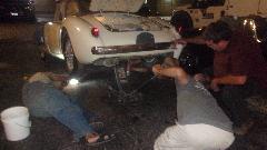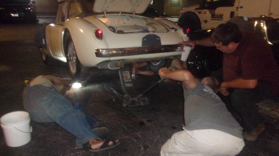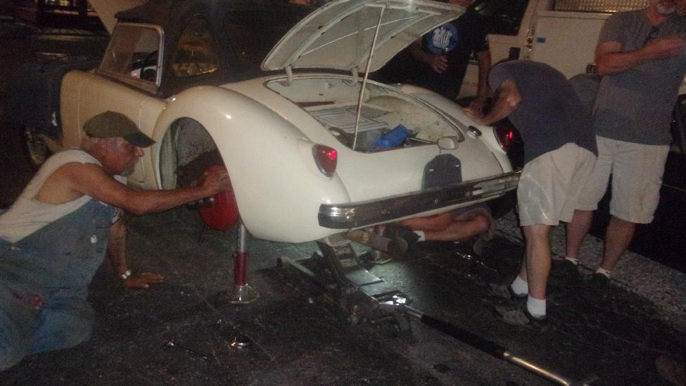 Meanwhile a few guys were fiddling with rear suspension on Tom's restomod MGB, all jolly good fun.