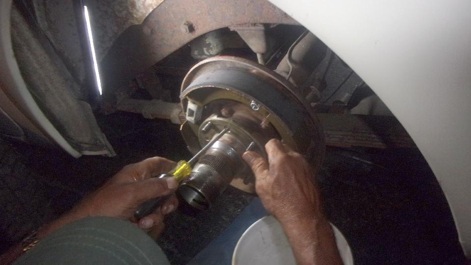 But oddly there was very little oil in the hubs when disassembled. So check oil in the differential, might as well drain and change it at the same time (and boy was that stuff ugly dirty), good move).