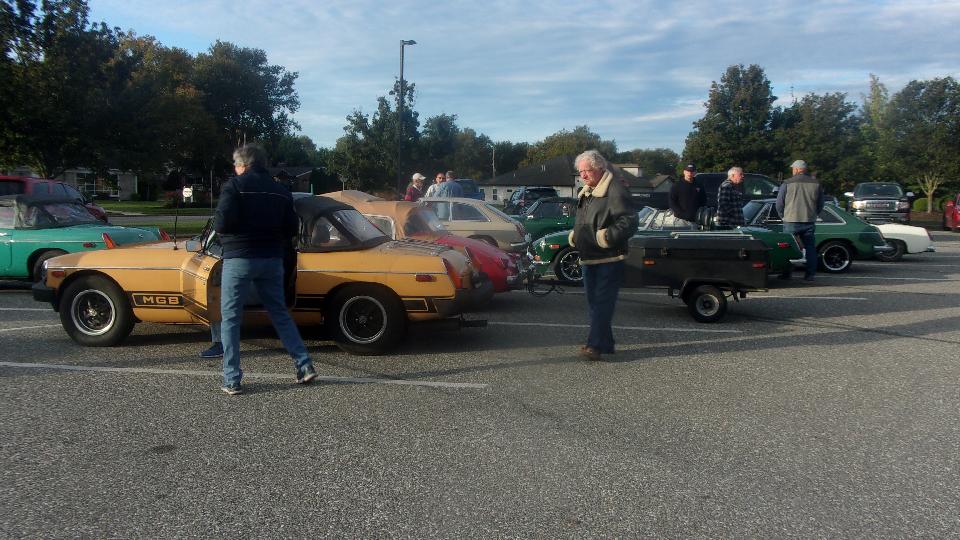 The rallymaster's car with the Tally Ho fox on top was the landmark for the gathering point. Well populated drivers meeting. I think I counted 38 people, which is 10 more than having 2 for each MG. Discounting the rallymaster, there must have been four non-MG vehicles in the rally.