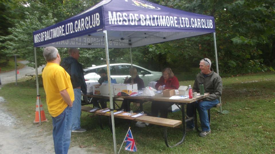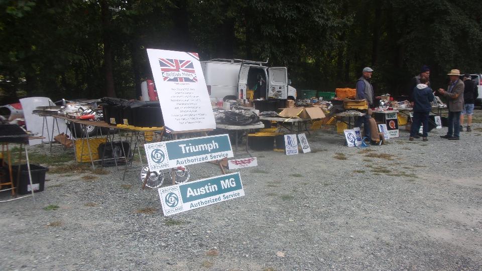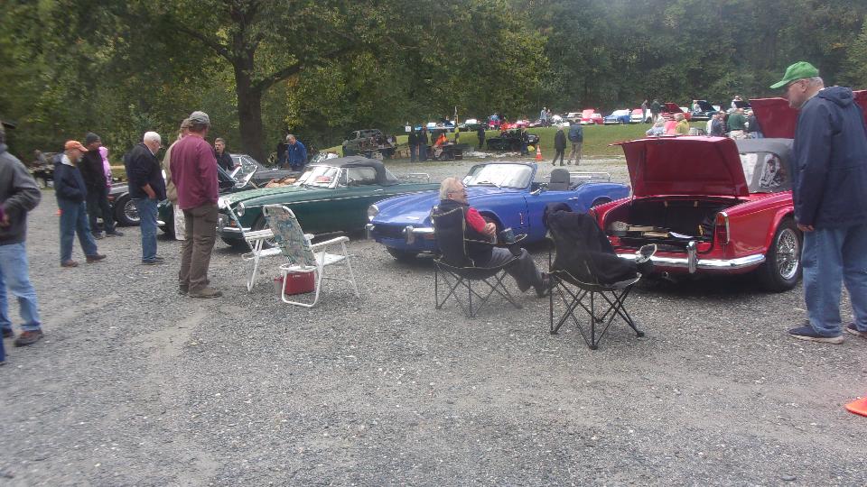 Met the Darrell's Garage crowd for 7-am breakfast in York, PA. Depending on how you look at it, pretty sure there were at least 16 Little British Cars there. Saddle up and ride out at 8-am, taking side roads to arrive at Rocks State Park in Street, Maryland an hour later. --- First stop was registration, not preregistered this time. Got the car parked, then checking out the table for the host club, MGs of Baltimore. Then check out the swap vendors, since the show cars were still rolling in. British Miles was the larger "anchor" vendor this time, but a few more as well. I picked up a pair of NAPA Gold 1068 spin-on oil filters for $5 each and stashed them in the trailer.