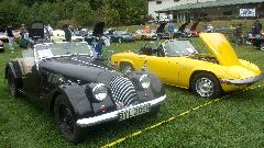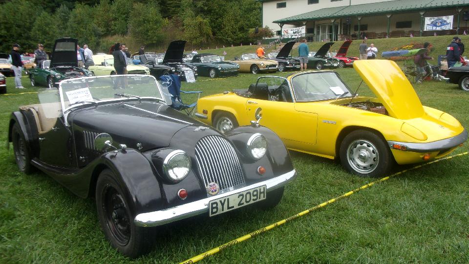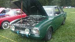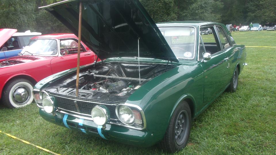 Five TR7, one chrome bumper Spitfire and one rubber bumper Spitfire, half a dozen TR250 and TR6, and lmost embarrassing that TR3 and TR4 were outnumbering MGA. Nice group of Jaguar, not quite as many chrome bumpers as I was expecting. Eight big Healeys and a pair of lonely Bugeye Sprites. One 1970 TVR Vixen, one Sunbeam Tiger, two Sunbeam Alpine. I rather liked a Ford Holbay Cortina with engine by Holbay Engineering. There were a few Lotus, one Morgan 4/4, a Sunbeam Tiger a couple Sunbeam Alpine.