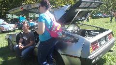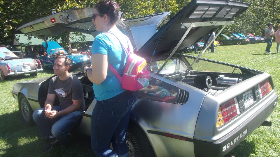 Nearing end of show time I strolled over to check out the twin Delorean aars. His has a Corvette V8 transplant, while hers has the original Renault V6 engine. Sorry, but she left her flux capacitor home.