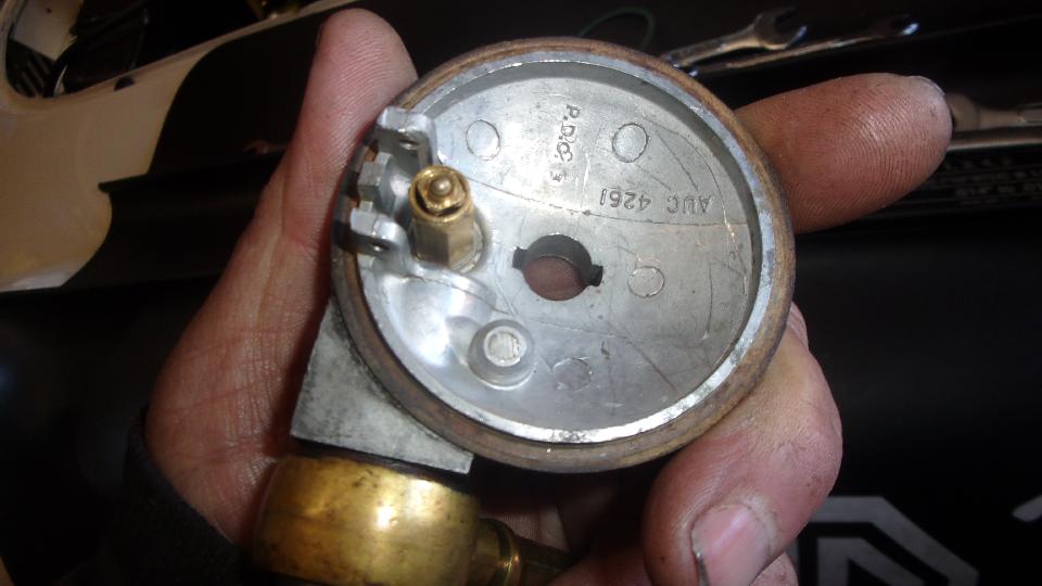 Pull cover off the front float chamber, full fuel bowl. Remove dashpot cover and air float piston and metering needle to see into the main fuel jet. Lift float cover, switch on to run fuel, fill fuel bowl to top, and fuel runs out of the main jet, so no problem with fuel delivery. Okay, must be bad spark.