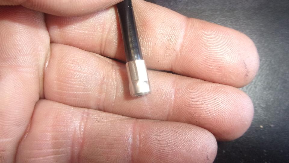 the fitting at other end was too large to get into the mounting nesting hole. I carefully ground down the outside of the fitting until it was a thin wall tube to make it fit, but then the cable jacket was too short. Final solution was to re-use the old outer jacket with the new inner wire.
