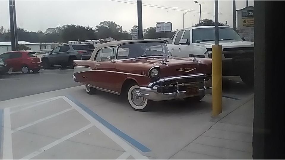 Still in Ocala. Well, it's a pretty big town. Different WiFi spot today. And there is some redeaming social value here, like the nice '57 Chevy we met at breakfast