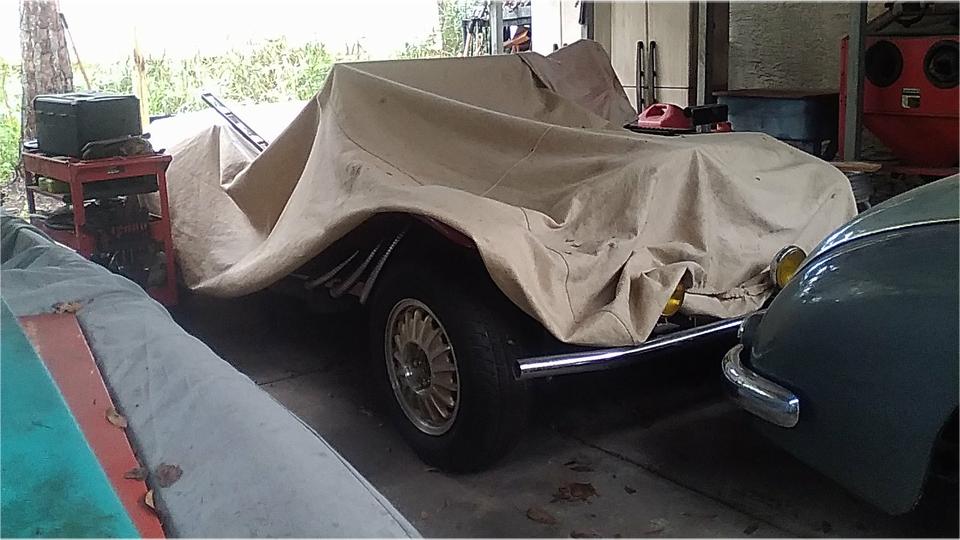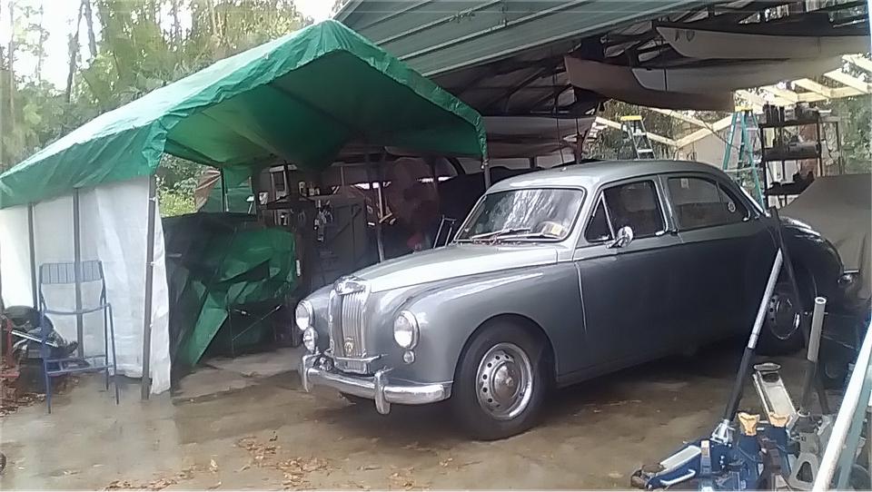 Meanwhile there was time for some pictures to catch up on the toys and progress since last Spring. There is the MG ZB Magnette with 1800 engine and late model MGB overdrive gearbox. Still having some trouble with the OD function, but getting real good at R&R of the engine and gearbox by now. The Porsche 914 under the green canopy was moved here from the far side of the drive to free up work and maneuvering space over there. Outer body sanding and priming has been progressing slowly. The MGB wannabe race car looks about the same as last Spring.