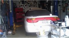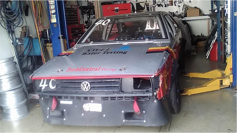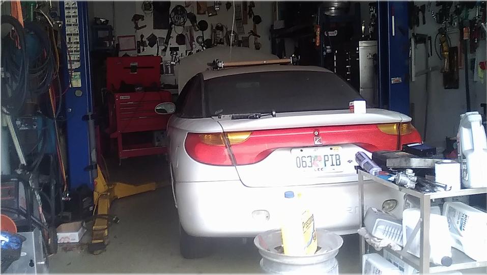 The Excalibur kit car (on Chevy Chevette chassis) is perhaps drivable but not yet finished (about like last Spring). Two VW race cars needing repair (kind of normal). The red 140 car cooked the engine mid season and has been sitting without repair. The silver one has been racing regularly, but is currently missing 1st and 5th gears. The Saturn in the workshop needs work on brake controls or such, maybe more on that one later.
