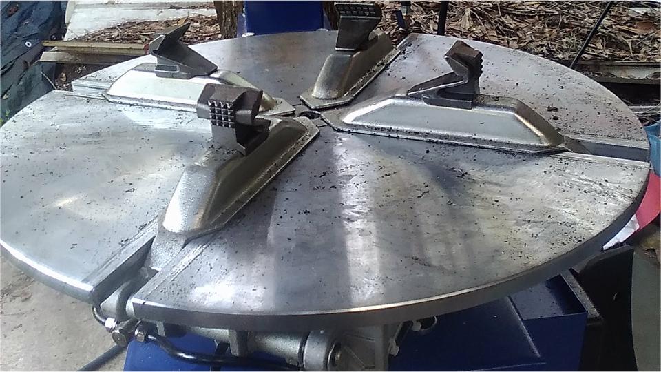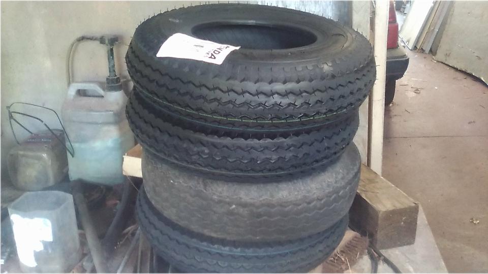 Regularly scheduled day at Tech Central, but not expecting many people to show up. But trailer tires have arrived, so maybe we can get that done. Changing three tires this time, including the spare hanging on the side of the trailer, and that wheel "pitted" rusty, so take that challenge first. Jerry has a nice tire machine but the rim locks won't close down far enough to hold the little 8-inch trailer rims. Does a nice job of breaking tire beads loose from the rim though. In the end I just dropped the small tire assembly (with loose beads) in center of the table, and let the machine bite down on the outside of the tire. Sorry no picture (maybe next time), but it worked well enough to give it a spin and pop the top bead off the rim. From there pry the rim out of the other side of the tire by hand, not a bid deal.