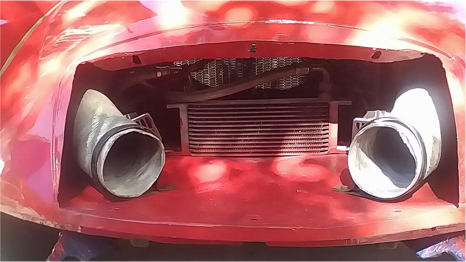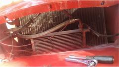 Finally we got to install the new grille that has been hanging around for a month. Where has the time gone? This grille is supposed to be notoriously difficult to install, but having done it several times, two pairs of hands can sort of force a new grille into a newly remodeled body nose in an hour (or two). Yeah, it's a bit of work, but nothing like impossible. I install it with only five bolts, leaving out the one at top center hiding behind the bonnet latch support parts. If you think that one is hard to install, try getting it out after the nose has been smashed. And it's often amazing how well a piece of plastic piping can hide a multitude of sins in the body shape.