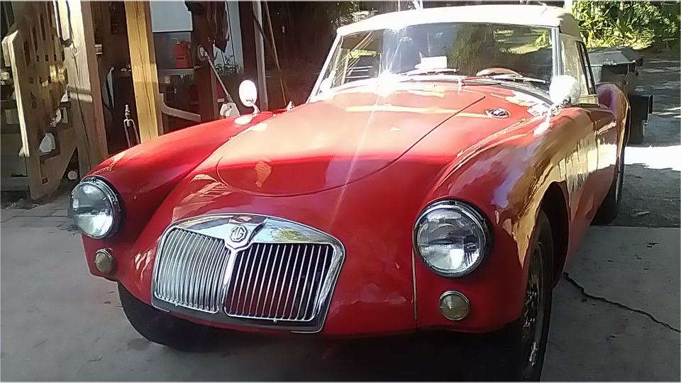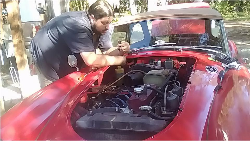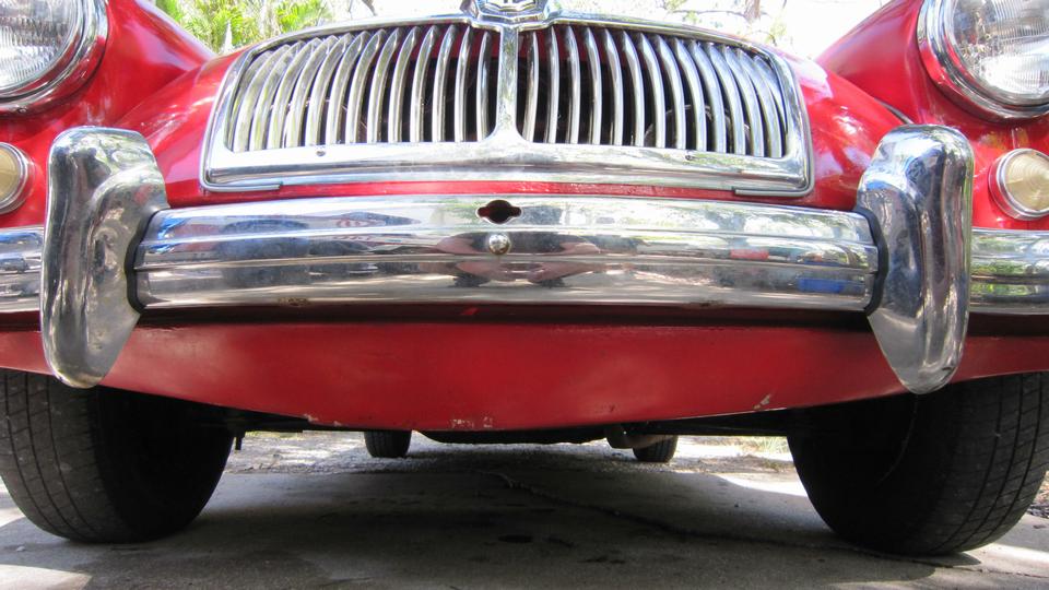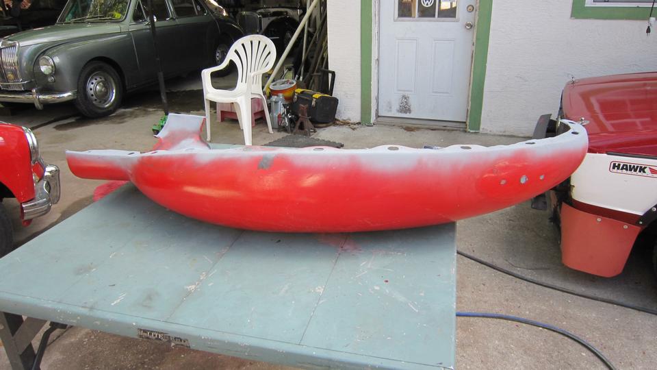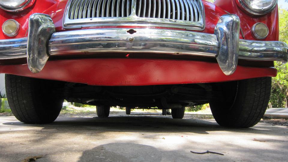 Had a little paint left in the gun, so I sprawled out in front of the MG and sprayed the scuff marks on bottom edge of the fiberglass front valance panel (just a little camouflage). And we even had time for a lunch break.