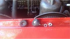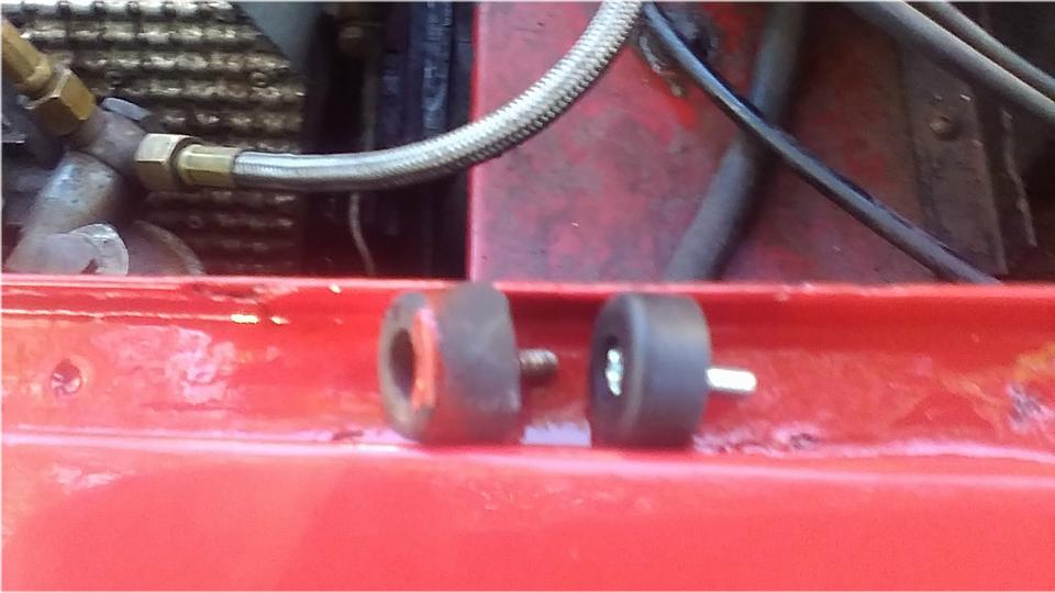 Then for the standard magic trick; grab a small paint brush and make the fasteners disappear. Also brush paint the whole face that will be behind the bumper, down to the lower protruding lip. Guess we missed a few scratches on the bottom edge, but maybe get that later. While reinstalling the bonnet, I installed two additional rubber buffers an inch ahead of the radiator. Now 12 instead of the original 10. Hoping this may give better positioning of the front end of the bonnet.