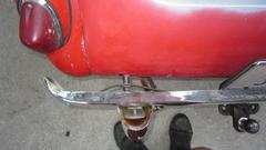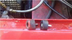 A few things to finish on the front of the MGA today, starting with installation of the bonnet buffers. The older buffers were a bit too tall, causing the bonnet to sit a bit too high. The new buffers are shorter, as original, and a wee bit smaller diameter as well, making easier installation without squeezing to fit within the gutter space. Will be back to check on this later. We also had the nose up and front wheels off while taping up the wiring behind the front lights. Then had to put the wheels back on for the bum's shuffle.