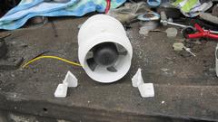 The bumper install went a bit better than I expected, so we still had some daylight to pick up a few other odd jobs. Good time to install the replacement Attwood Bilge Blower (the last one burned out after 10 years, 260,000 miles). Start with cutting off the two mounting legs. Then wrap the outside with a half inch of sticky foam rubber. In this case it was one wrap of 3/8" followed by a second wrap of 1/8" rubber (what was immediately on hand).