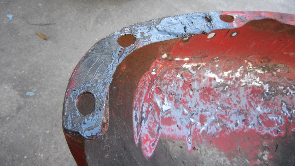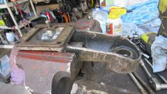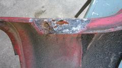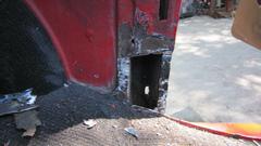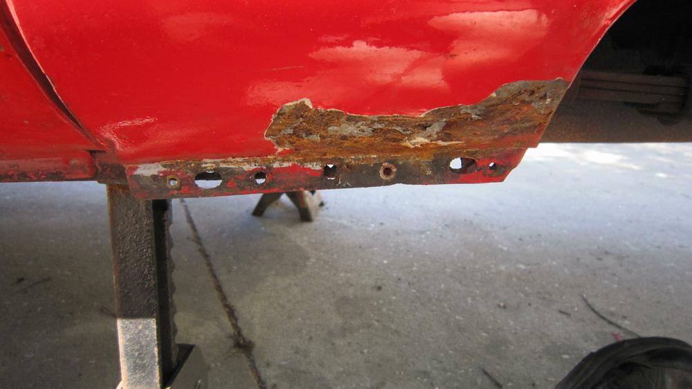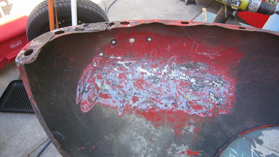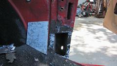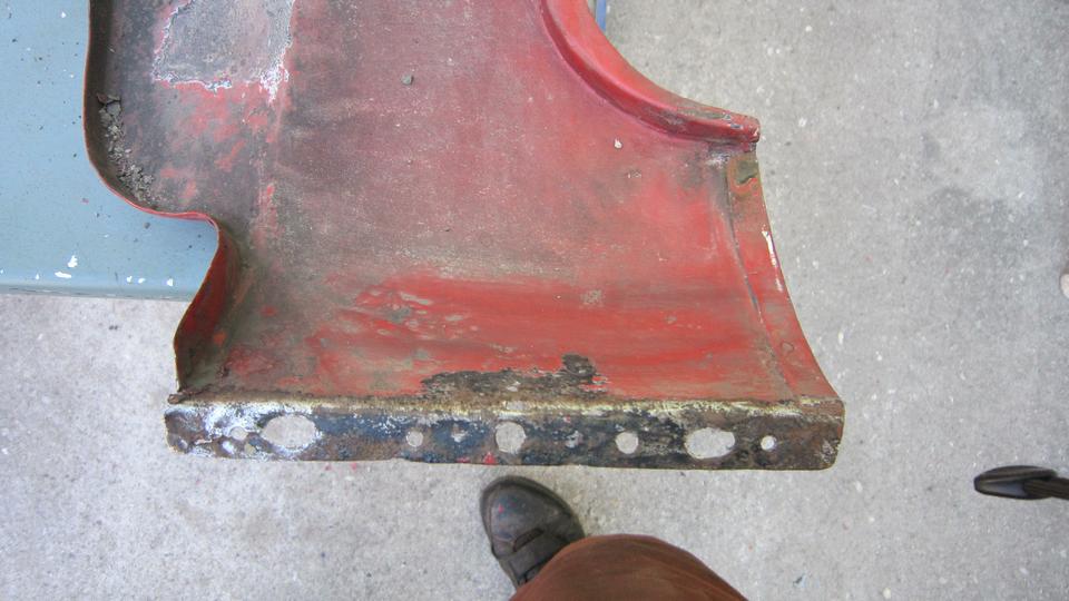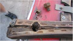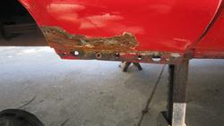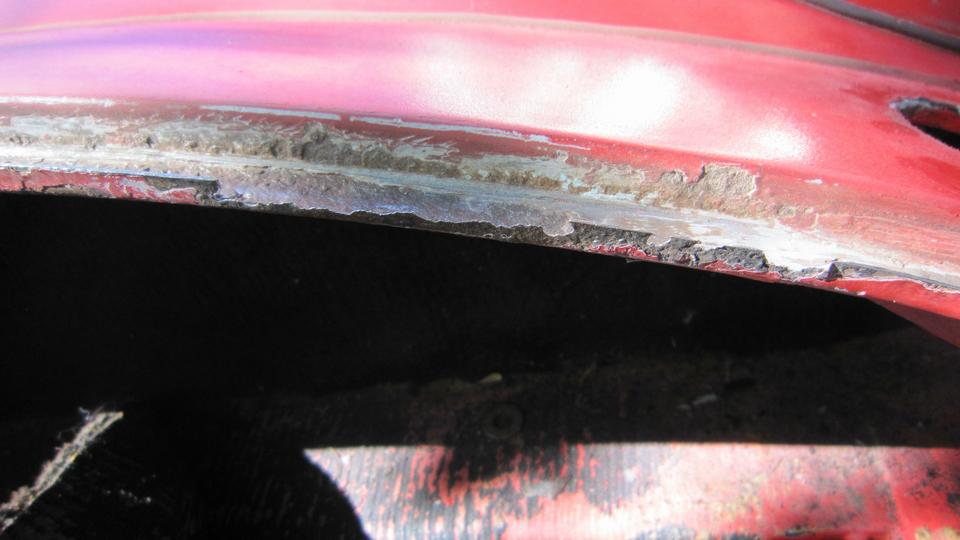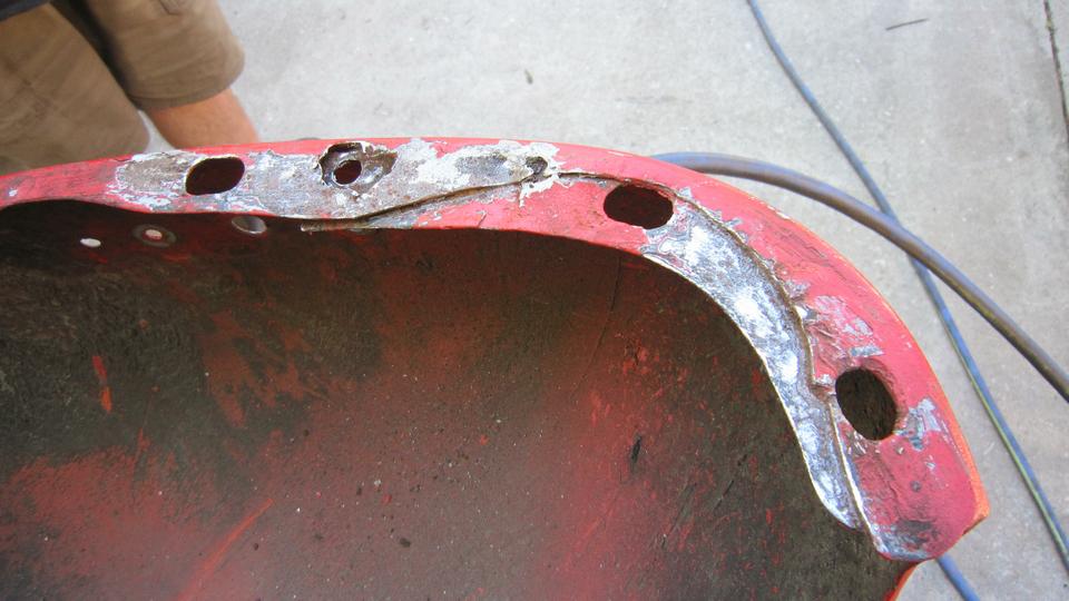 This picture (at right) shows the left rear flange needing quite a lot of rotary rasping to remove rust and dig
