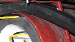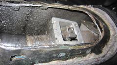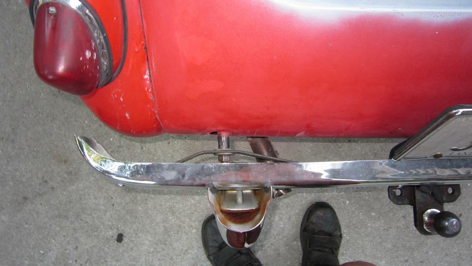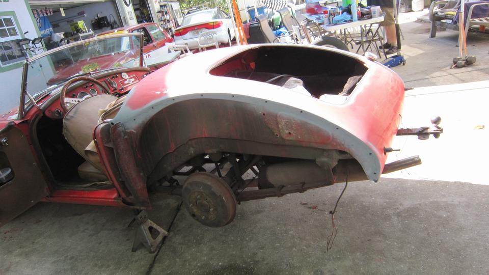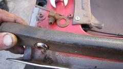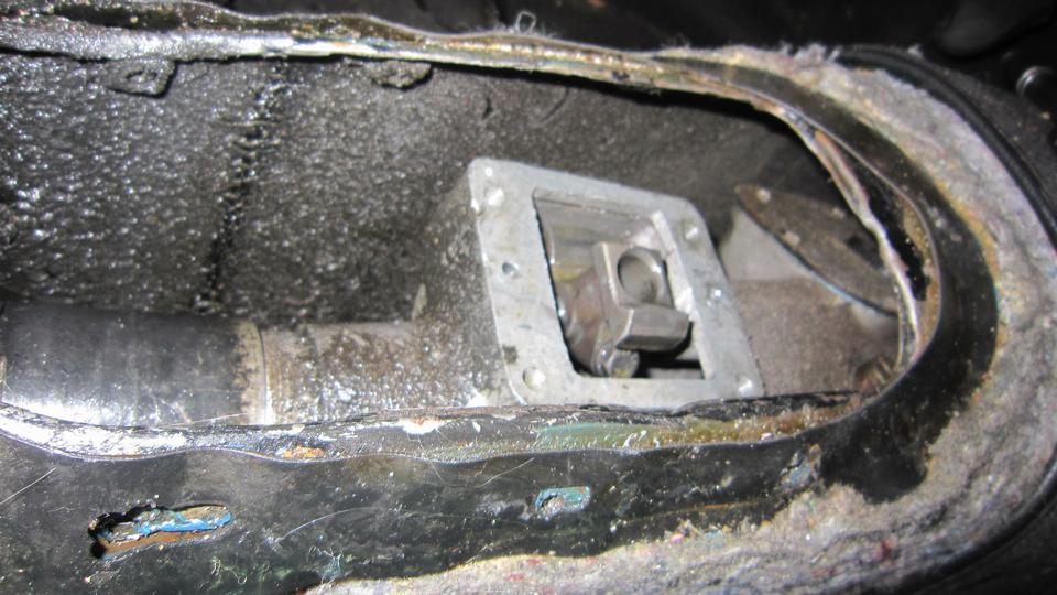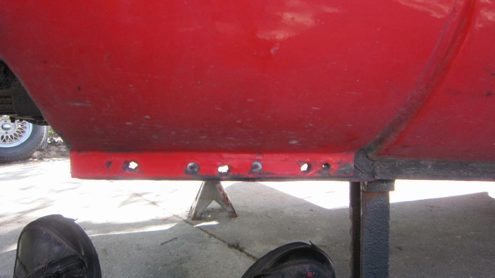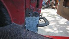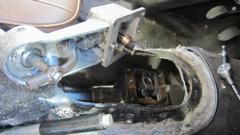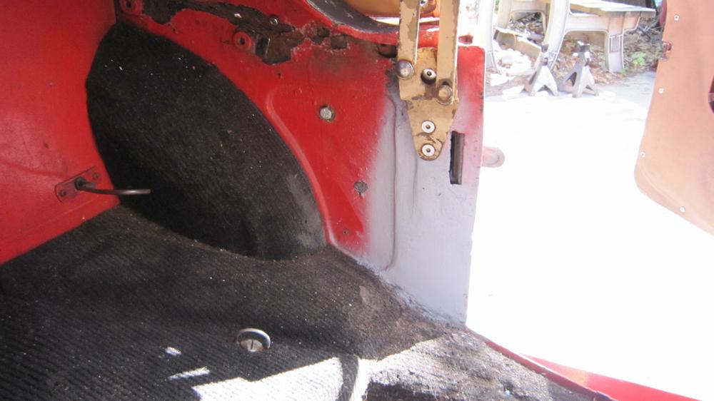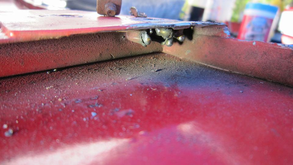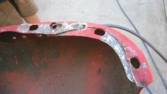 This picture (at right) shows the left rear flange needing quite a lot of rotary rasping to remove rust and dig