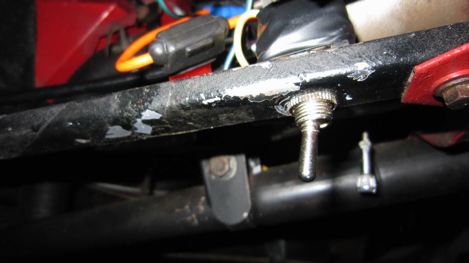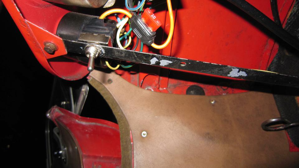 I have a toggle switch and fuse under the dash, attached to the under dash brace near the turn signal switch. I also just replaced the switch for good measure. The old switch would short from power terminal to switch body ground when switched off. Fortunately the dash brace and end mounting parts were well painted during the last restoration, so the dash brace was not grounded to the body, so no short and no blown fuse for ten years. I discovered this condition about two years ago, and immediately bought the replacement switch, just never got around to installing it until now.