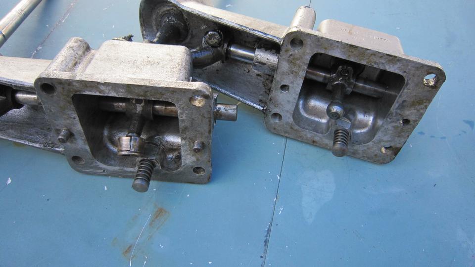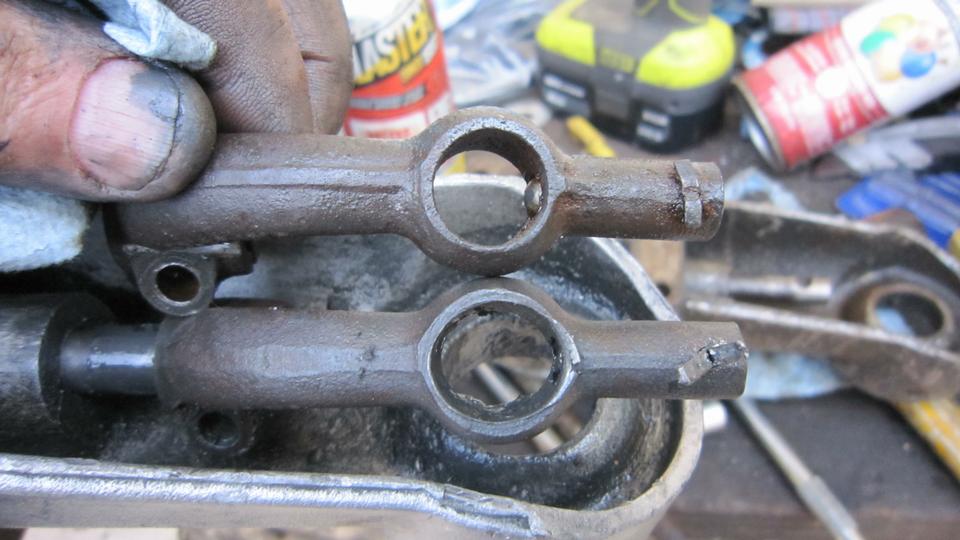 Second one came from my car with half a million miles, moderately worn in the shaft bores, very badly worn in the spherical hand lever nest, badly worn rear lever (above right), broken front lever. The only yield from this one was a clean shaft and a worn housing good for a core return for re-machining.