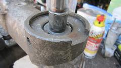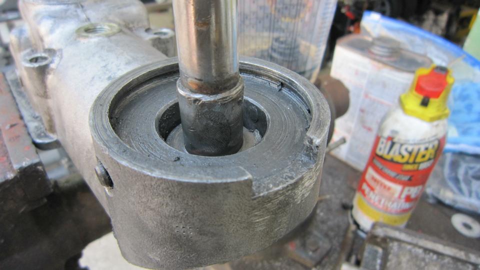 Over to the bench to swap the split bronze bushing from the loaner assembly to the Frankenstein assembly. First attempt to install was a no-go, having dowel pins in both the gearbox and the shifter assembly. Oops.