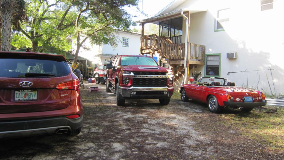 Tech Central Friday. Wondering why the Heavy Duty Chevy 3500 was sitting there? Ah, hitching up the trailer with the Rabbit race car, going racing at Daytona for the week end.