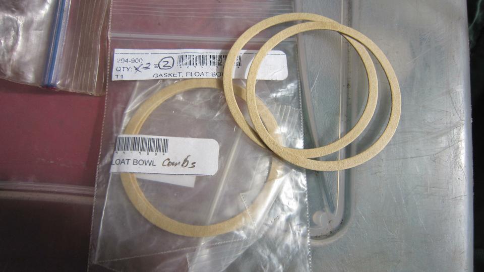 running? Couple of months. Pull the float covers off, clean and adjust float valves. Float arms dropping too far down, so the valve pin was binding against the arm. Grind a pair of short slots in hinge end of the float arms to make a bendable adjustment tab to limit downward travel of the arms, and put it back together. Two new float cover gaskets contributed by the Magic Trailer.