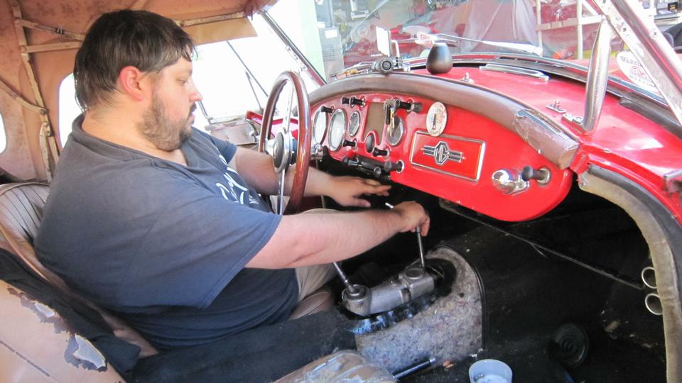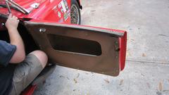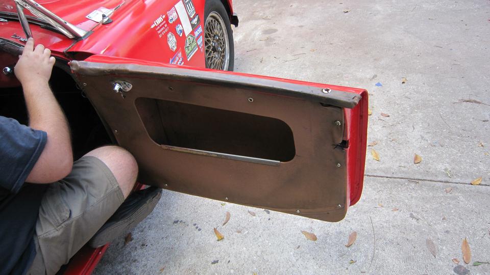 Since we had the place to ourselves, we could do a little work on the MGA (not common on Fridays). So we reinstalled the door interior panels (giving us back use of the door pockets).