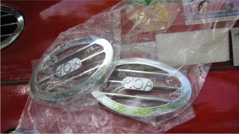 Back to the shop. Pull the last parts shipment out of the office to inventory and stow away the spare parts. A shiny new metal cap for the master cylinder. Nice new pair of MGA cowl vents this time, so set about installing those.