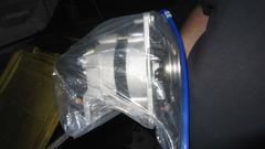 Okay, it wasn't that dark when we were backing out, but the camera flash lit up the car, making the background look much darker than it really was. Just getting the bumper installed made this a very good day.