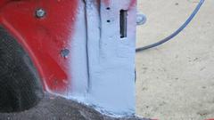 Walmart, and sprayed the outside of the front flanges. This is where the wings tuck into the shutface panels on the door latch posts. I also painted the inboard side of the bolt flanges on the wings, and also the mating surfaces on the car body.