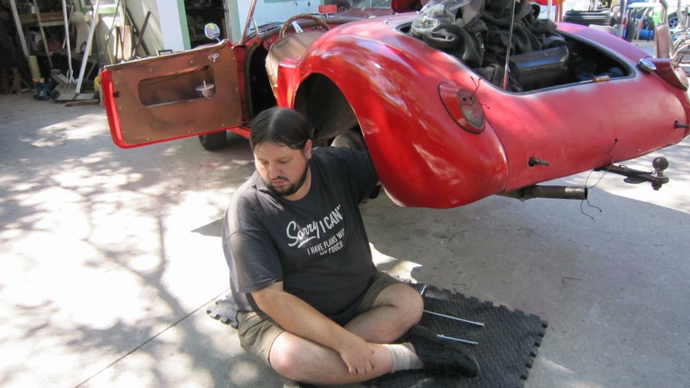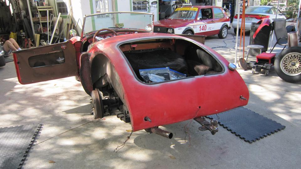 The racing Rabbit on trailer was sitting on the forecourt for work, so our MGA was not getting in for front bumper installation (yet). Not unusual, as we commonly don't work on the MGA much on tech Fridays. The Rabbit was up for minor roll cage mods, safety harness relocation, and installation of a new driver seat (and maybe a second seat as well).