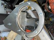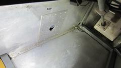 Determined not to remove the front wing for this fix, I spent more than an hour cutting a metal patch with one 90-degree bend, and carefully grinding the edges to precisely fit the opening for flush fit all around. Holding it flush in place with two welding magnets, put a few strategically placed tack welds, remove magnets, many more tack welds, and finally having it welded all the way around. Tough job trying to grind it flush all around in the limited space, but got it close enough to "Bondo" over with JB Weld and call it good.