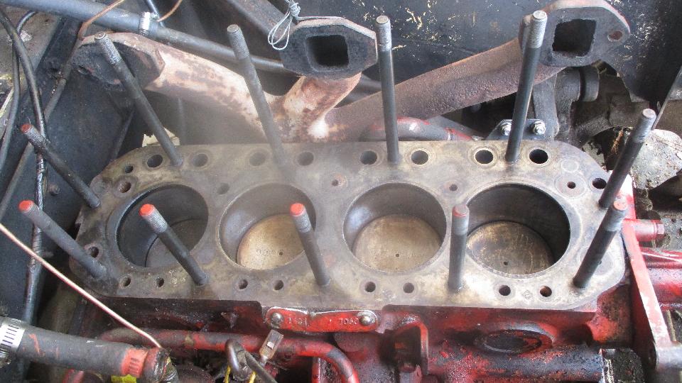 Standard fare by now, grab the spare head gasket out of the trailer, drain the coolant, disconnect hoses and linkages, remove carburetors and manifolds, 11 head bolt nuts and washers, and lift off the cylinder head. Scrape clean the mating surfaces of head and engine block, wipe clean, and reassemble with the new head gasket. Everything back together with fresh coolant installed, and fired up the engine again in three hours. That struck me as a little slow, but we did change a couple of threaded studs and one hose. Might have gone quicker if it had been raining.