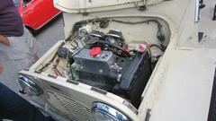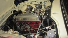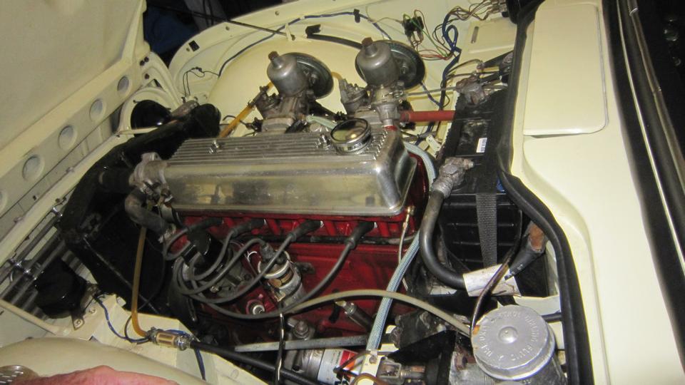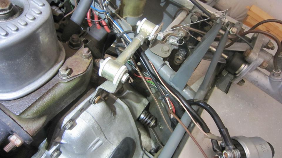 The car otherwise seems to be easy enough for normal service access with engine connections and controls being easily accessible. That large open bonnet is a nice feature. The "dog bone" stabilizer brace between bellhousing and frame is something I had seen before on Austin Mini (and Mini Cooper), MG 1100 and Austin America (but those are all front wheel drive applications).