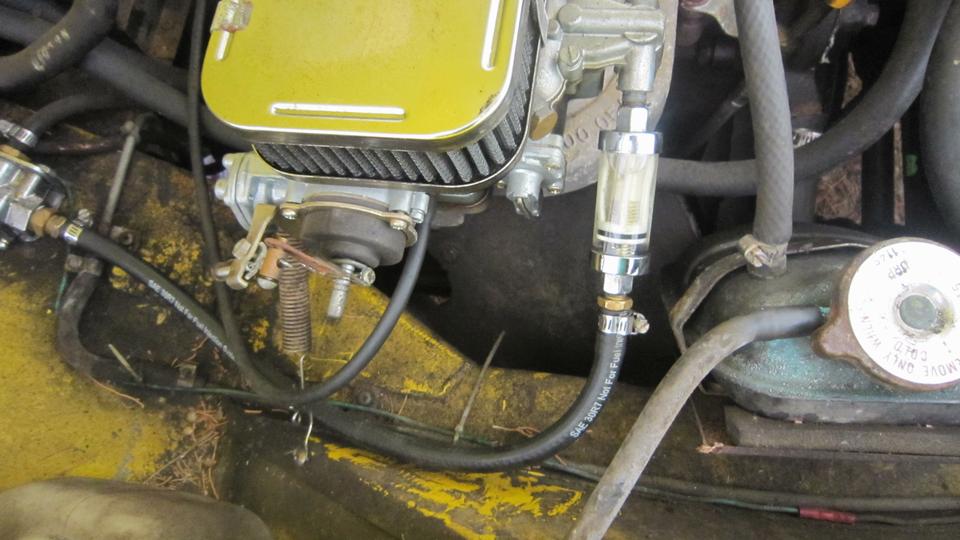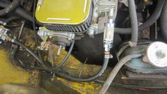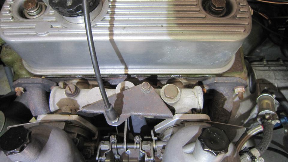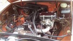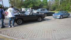 Weber carburetor, idles well but coughs on acceleration. That was pretty obvious at first glance, with the Weber carburetor missing the activating lever for the accelerator pump. Put that on his shopping list. Spent some time chatting about how to reconnect the fuel vapor recovery circuit and make anti-run-on work again. -- He also has a 1979 MGB, recent acquisition (with no key), lights & brakes good, clutch with no fluid. Story is an overdrive gearbox was recently installed, but never driven, and maybe the engine has not run for 15 years (but it will turnover). Needs some rust repair (floor pan patches). Debating if he wants to fix it or sell it.