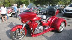 Then a very nice Jaguar 595S, big and beautiful, and a Morgan +8 (didn't check if it was petrol or propane fueled). First time I've see a Victory Freedom 106 cu-in Twin V 3-wheeler. Well, it isn't really vintage, or British, but it is out of production. I counted 27 British cars present.