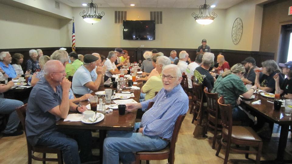 Finally time for 9-am buffet breakfast. Couldn't believe there were 54 people present. I guess we did finally recover from that Covid thing. They had a few new members, a couple of first timers, a few new cars and some car work going on. Crashed through a quick club business meeting, spending time chatting about their upcoming April Fool's Day Multi-Mark Car Show (mostly asking for volunteer help). I got honorable mention, and a few "Thank you" for my website.