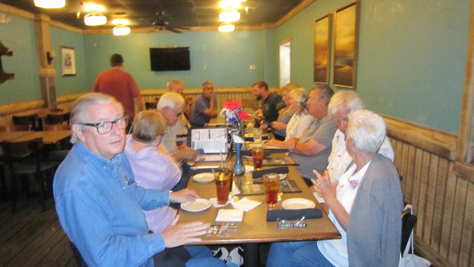 On to our 1-pm lunch time meeting with Bay British Cars club at Triple J's Steak House in Panama City Beach, Florida. Pre-Covid in February 2020 this group could regularly field up to 30 club members for meetings or social occasions. For get togethers early post-Covid (December 2021), they could get 6 to 8 people together, still very hesitant at that time I recon. Now a bit more than a year later things are improving some but still abnormally slow, gathering 12 club members (14 including us). They seemed to be somewhat discouraged with some chat about possibly discontinuing the club. Oops, please no, the world at large needs the club.