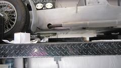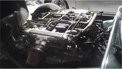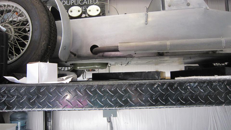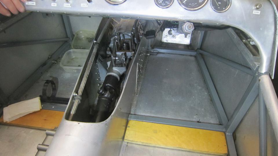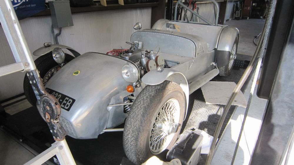 But the one we really came to see was a Lotus 7 Series 1 with tube frame, cycle fenders and all aluminum body work. In the traditional Colin Chapman tradition, this one was built to be small and light weight. The engine would be Austin A-series 1275cc (Austin Healey Sprite and MG Midget fame). The gearbox and rear axle/differential would also be Austin A-series parts (MG Midget type). Where the Midget was steel unit body construction, the Lotus has tube frame and aluminum skin assemble with a myriad of pop rivets. The belly pan in this case is more for aerodynamics, but that does make it similarly difficult to remove engine and gearbox.